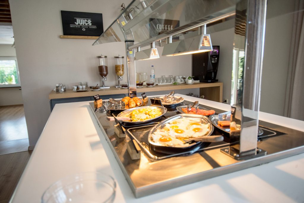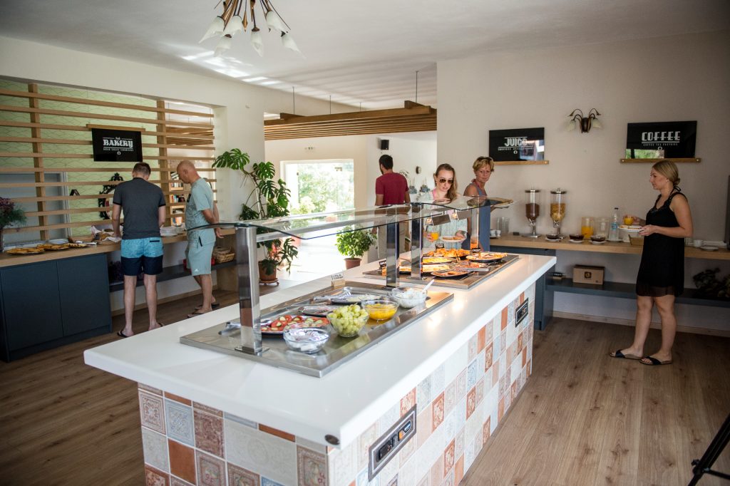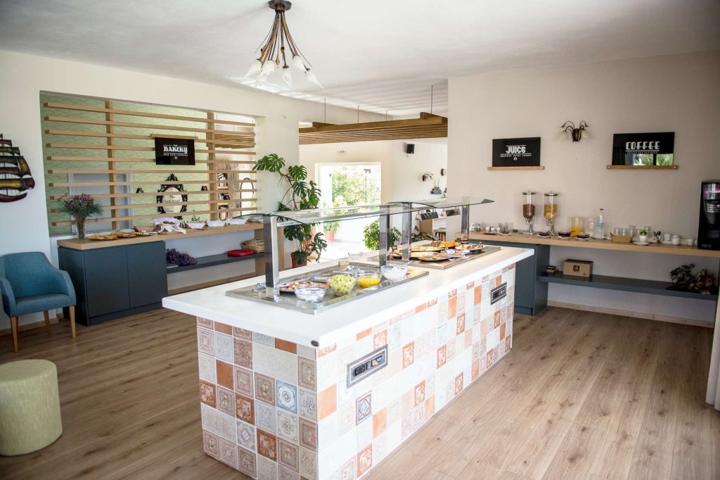 Taste unique flavors under the golden sun of Molyvos: enjoy homemade breakfast and snacks at our by-the-pool bar restaurant. Exquisite menu offerings are perfected with an amazing view of Molyvos castle next to the pool. Pure vacation paradise!